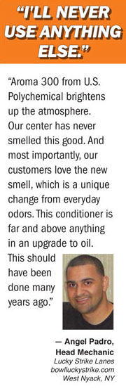 For a limited time we are offering Aroma 300® in quart bottles with a sprayer so you can try the conditioner on your lanes without using the oiling machine — a very inexpensive, very easy way to experience the FANTASTIC smell of Strawberry Citrus.